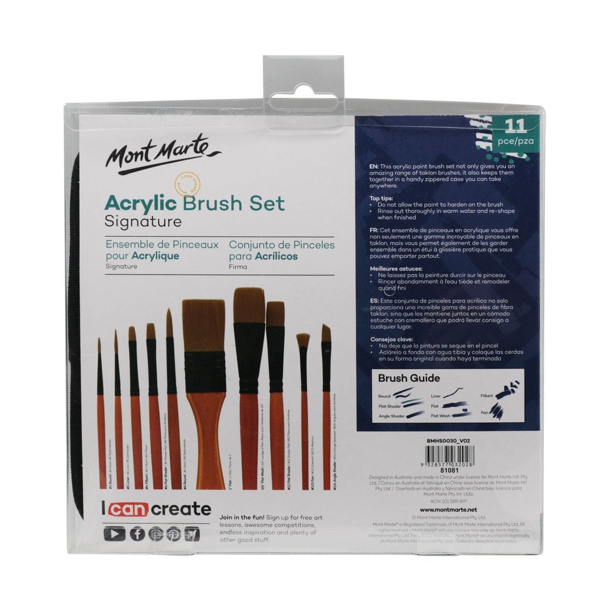 The Mont Marte Acrylic Brush Set is a beautiful selection of taklon bristled brushes ideal for acrylic projects. The handy zip case is perfect for travel and helps to extend the life of your brushes.