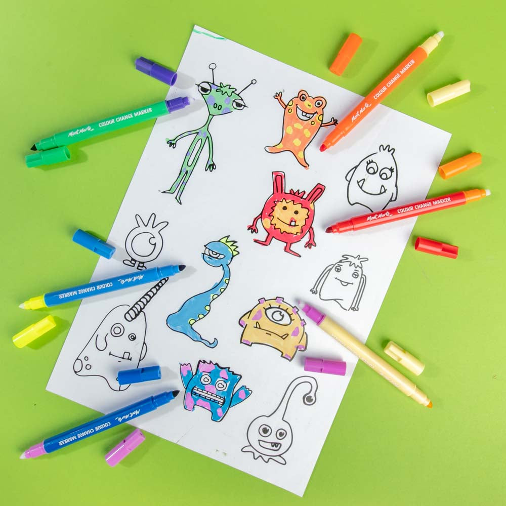 Watch six colours become twelve with our Colour Change Markers! Use the coloured marker end to create your artwork, then use the opposite white tip over the top to transform to a new colour! Go from yellow to pink, red to orange, green to purple and more. Pick up a set of these magic markers to captivate young creators.