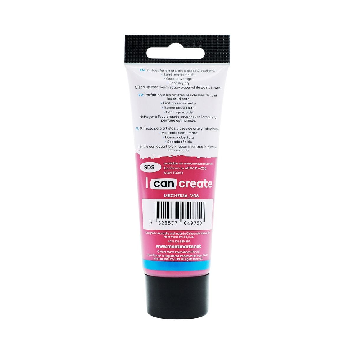 Dive into the world of painting with our Acrylic Colour Paint 75ml. These paints are a great go-to for your art and craft projects. Featuring a smooth and creamy texture they can be used on most surfaces including canvas, cardboard and leather. If you want to experiment with acrylics this bright acrylic paint has you covered, it's ideal for beginners, students and art classes alike. Start creating something new today!