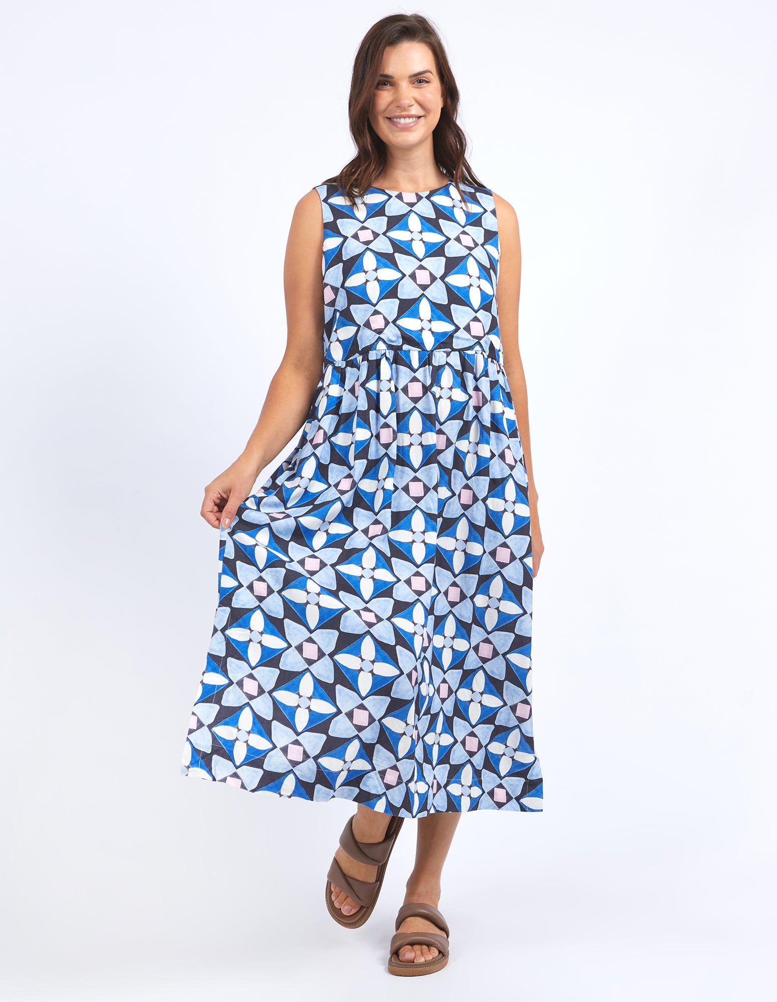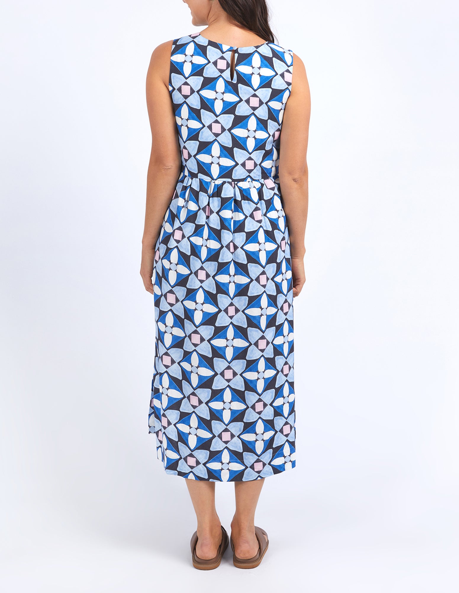 A classic dress featuring bright and playful geometric print that is reminiscent of sights seen in a European summer. The Painted Tile Dress is the perfect souvenir to take you back to that dreamy destination.