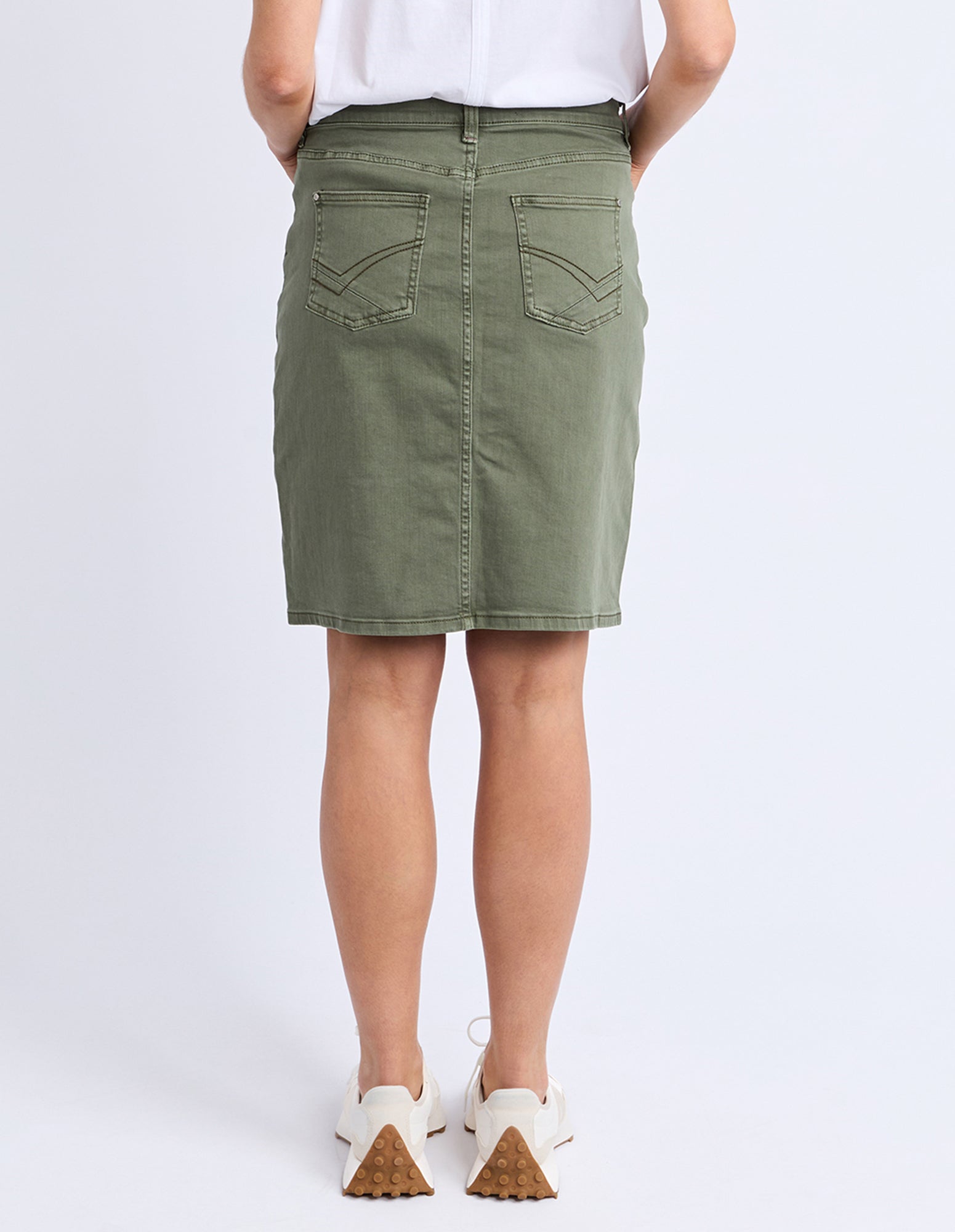 The Belle Denim Skirt is a fun take on your classic denim skirt. Made from a medium-weight denim this midi length straight cut skirt features a zip front, fitted waist, and hip pockets.