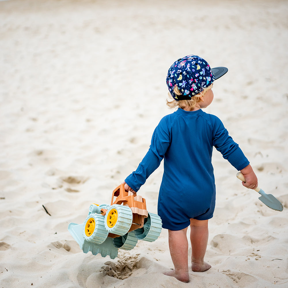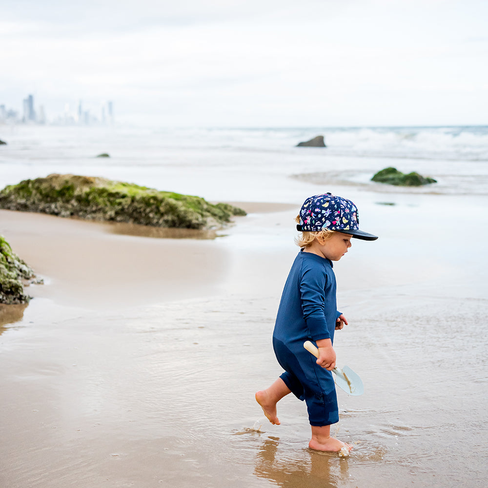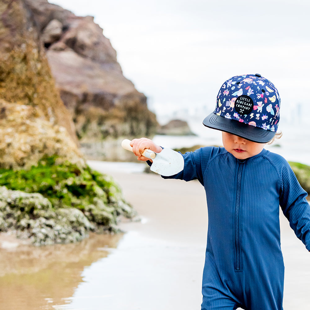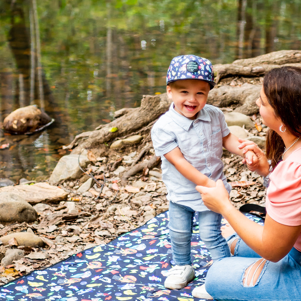 Our Superhero Pals cap features a printed crown with a navy background with a black PU leather peak. Adjust the snapback setting on the back to make the cap smaller or larger and find the perfect fit.