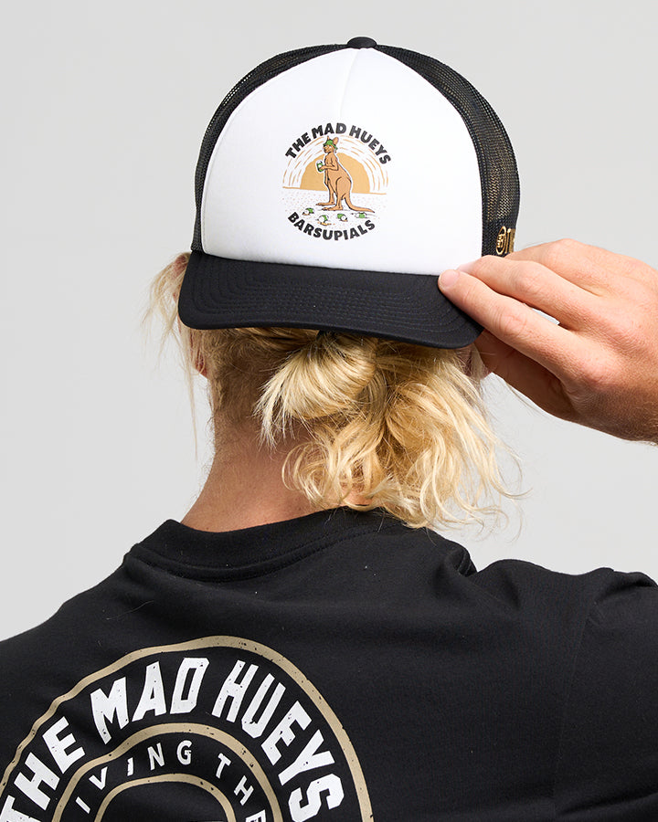 Elevate your headwear game with the Barsupials Foam Trucker in White. This classic men’s trucker hat features a foam front and breathable mesh back and sides, offering ultimate comfort all day. With side embroidery detail and an adjustable snapback for the perfect fit, it’s a stylish and functional addition to your outdoor adventures, beach days, or casual outings.