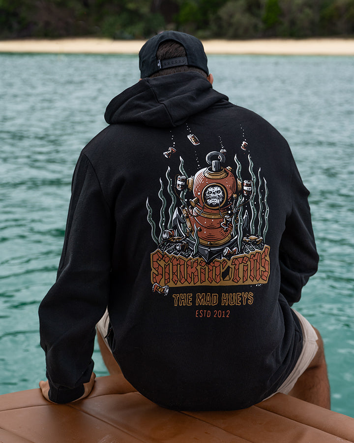 The men’s Sinkin’ Tins Hoodie in black is made for the bloke who knows how to have a good time, whether he’s out on the boat or just cracking a cold one with the boys. If you’re the kind of guy who loves the ocean, a bit of banter, and never says no to a beer, this hoodie’s for you. It’s laid-back, no-fuss, and ready for anything—just like you. Throw it on, sink a few tins, and let the good times roll!