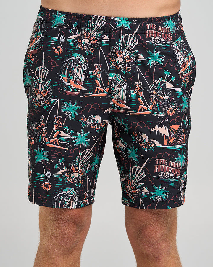 Stay comfortable and stylish in the She'll Be Right 18" Swim Volley. Made from 4-way stretch quick-dry fabric, these swim shorts offer flexibility and fast-drying performance for all your water activities. Featuring an elastic waistband with a drawcord for a secure fit, and an 18" leg length for the perfect balance of coverage and freedom, they’re ideal for surfing, swimming, or lounging at the beach.