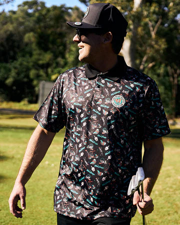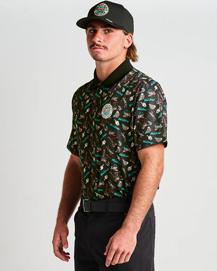 The Hueys Golf SS Polo in Black is your ultimate golf game companion. With its unique all-over Hueys print, this polo isn’t just stylish—it’s packed with performance features. The 2-button collar keeps it classic, while the UPF 50+ protection has you covered under the sun. Thanks to the 4-way stretch material, you’ll swing with ease, and the fast-drying fabric ensures you stay cool and comfortable from the first hole to the last. Tee off in style and hit the green with confidence!