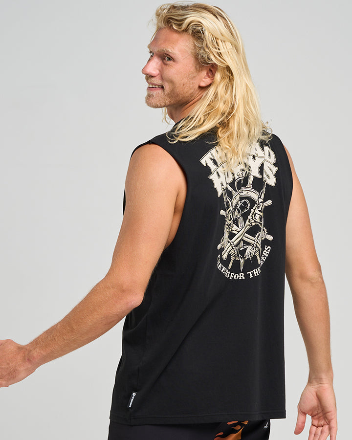 Set sail for good times with the Ship Wheel Beers Muscle, featuring a bold design of a ship’s wheel surrounded by cold beers and bones, complete with the slogan "Cheers for the Beers." Perfect for those who love the thrill of the open sea and the taste of a cold one in hand. Whether you're on deck or kicking back onshore, this muscle is your go-to for raising a tin and living the good life. Cheers for the beers, mate!