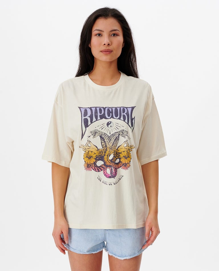 Made for surfing's iron maidens, the Azalea Rock Heritage Tee by Ripcurl is a rad women's top inspired by band t-shirts and 70s rock outfits. Made from 100% cotton jersey with it's comfy and light drape, detailed with epic front and back prints, and designed in a heritage fit.