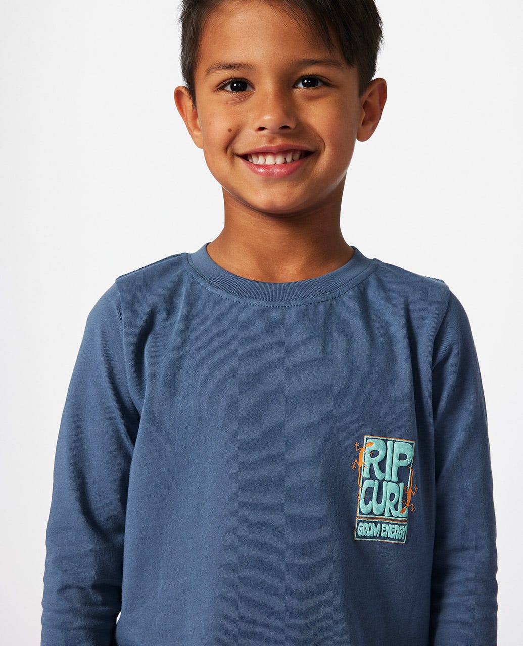 The Grom Energy Long Sleeve Tee combines a standard fit with the durability of 100% cotton (160G cotton jersey), perfect for any young surf enthusiast. The long sleeves provide extra warmth for cooler days, and the bold front print captures the essence of energy and adventure. Finished with an inner neck print and woven flag label, this tee is as comfortable as it is stylish.