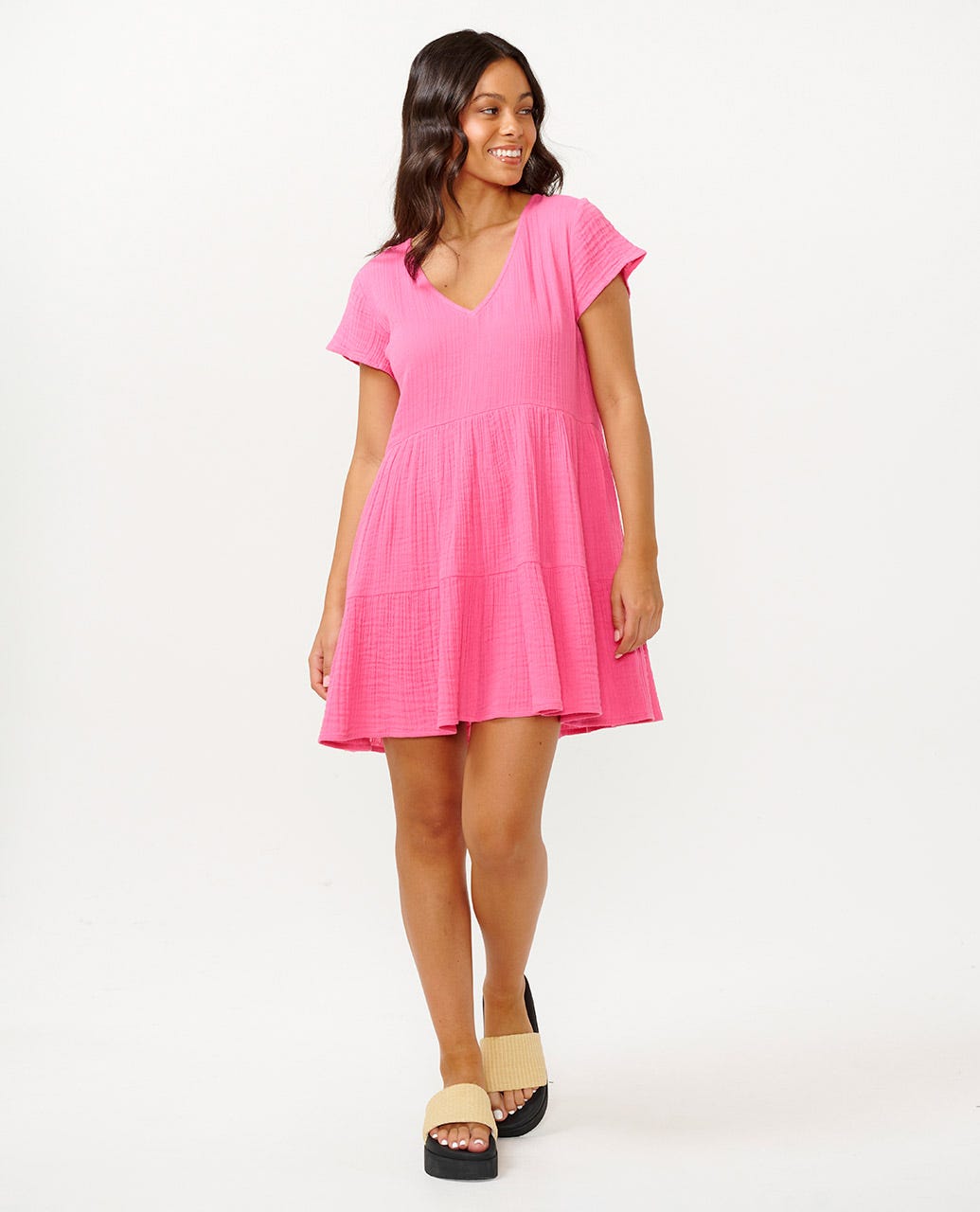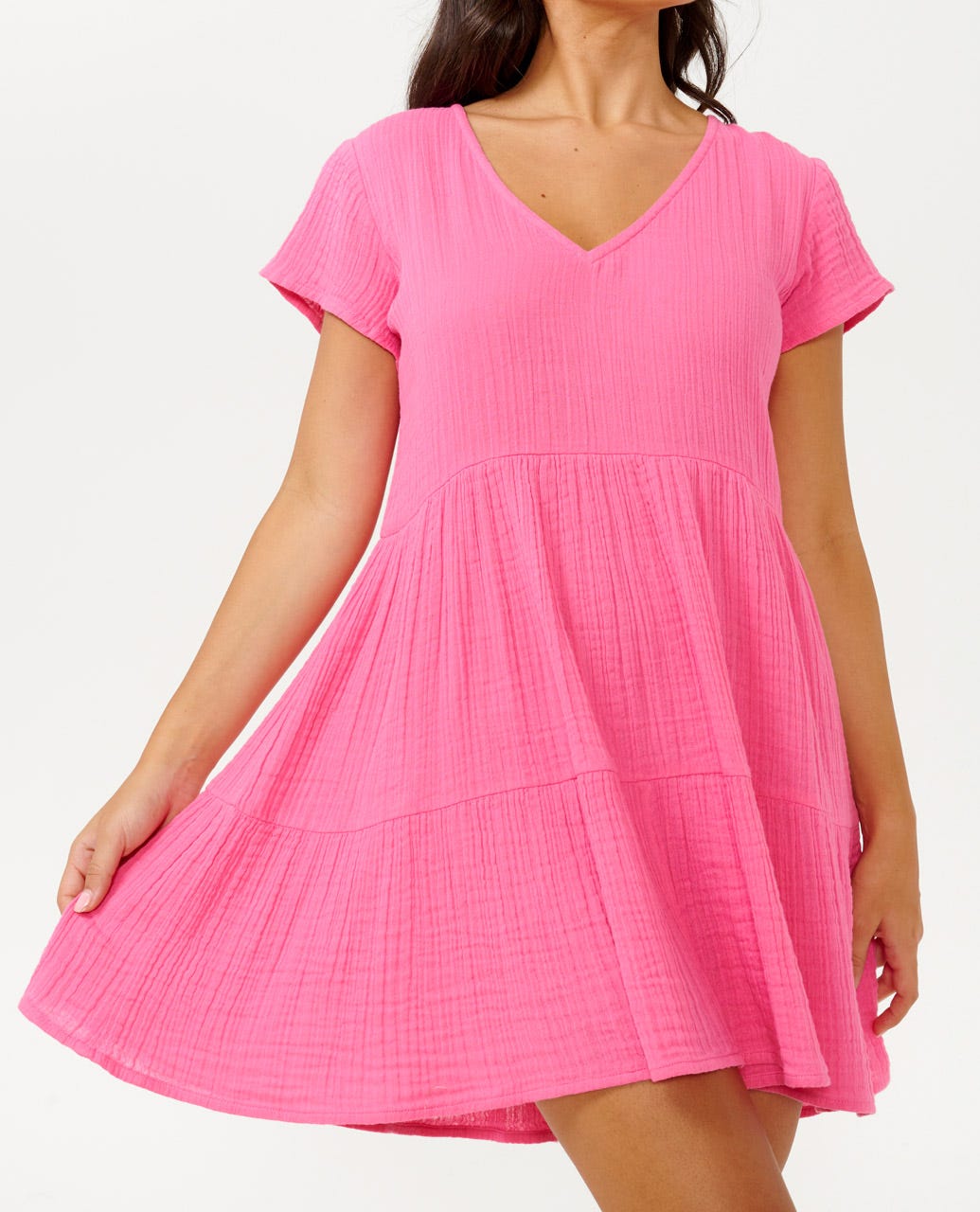 Embrace a relaxed and effortless look with the Premium Surf Dress. Made from cotton double weave gauze fabric, this relaxed fit dress offers both comfort and style. The garment wash adds a soft and worn-in feel, while the pop-over design allows for easy wearability. The shirring detail adds a feminine touch to this casual dress. Whether you're heading to the beach or running errands, this surf dress is a fashionable choice for a laid-back yet chic ensemble.