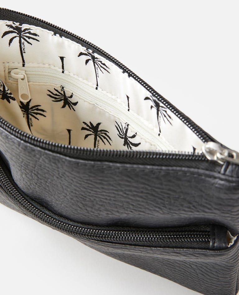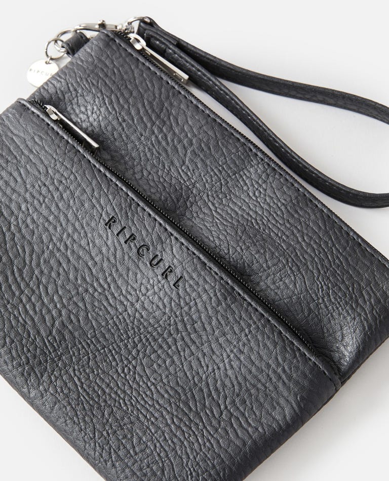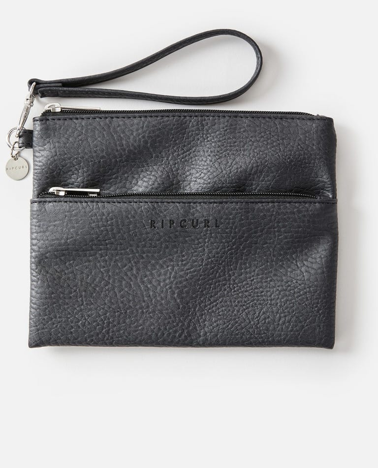 Features: 100% polyurethane, Zipper closure, H:170mm W:225mm, Embossed logo, Multiple compartments, Detachable wrist strap, Rip Curl printed linin, Rip Curl coin charm, Nylon zipper closure.