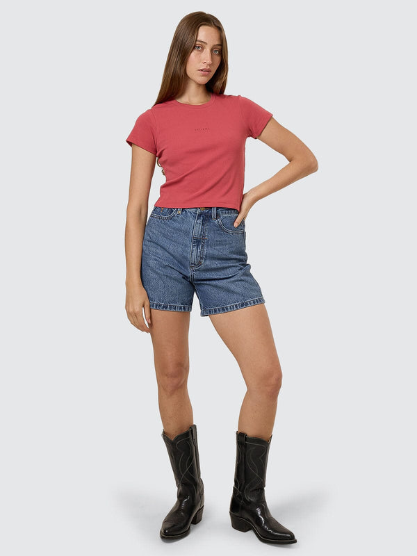 Punchy, cropped, and made to move, the Minimal Thrills Mini Tee in Redwood brings a fresh pop of colour to your Australian women's clothing rotation. Cut for comfort and style, this organic cotton t-shirt features a soft, premium fabrication with a crew neckline and just the right amount of stretch for all-day wear. An easy favourite from our spring Thrills tee Australia collection, this relaxed-fit tee elevates the basics, perfectly paired with women's baggy pants for a confident, street-ready look.