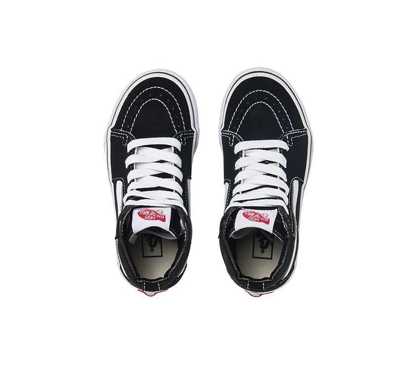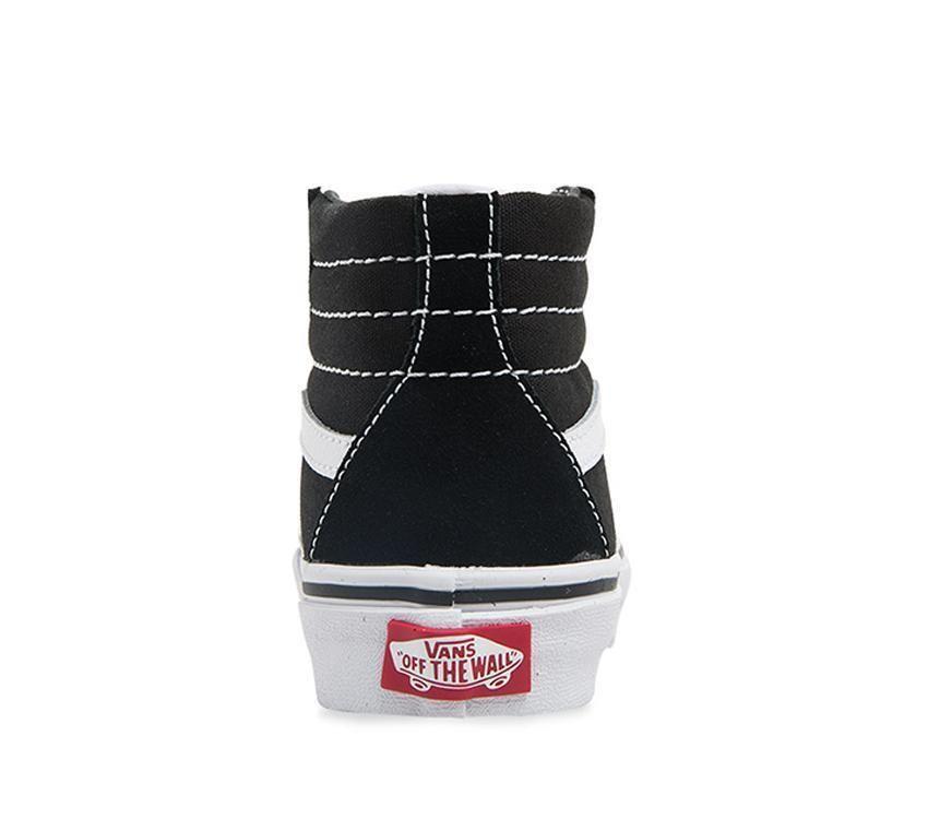 The Vans SK8 Hi Black/True White is constructed from a combination of canvas and suede and features the signature side stripe detail and vulcanized waffle sole.