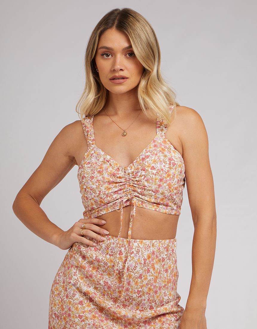 Josie Top by All About Eve is the perfect summer top, featuring ruching and tie at front, flattering v neck, elastic at back and thick straps.