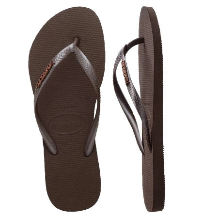 Elevate your summer style with a premium take on our slim logo thongs. Our Slim Metal Logo thongs for women feature a metal Havaianas logo on the strap to add a touch of luxe to the everyday. Choose from a range of colours.