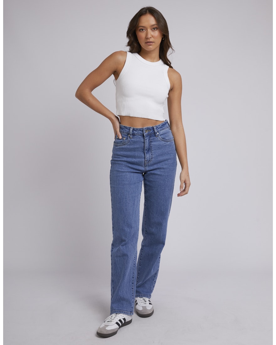 Introducing Mila, the newest denim fit that combines a high waist and straight leg for a classic and timeless look. Constructed with stretch denim in a mid-blue wash, Mila offers both style and comfort to elevate your denim collection.