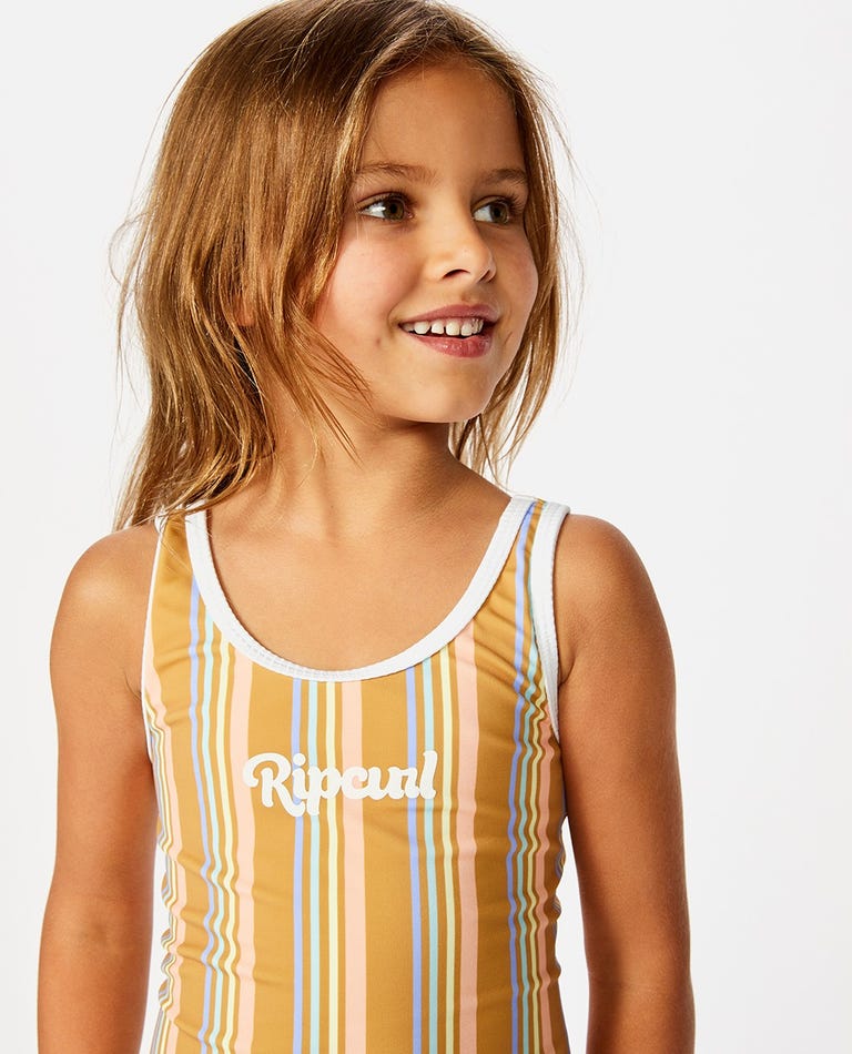 The Dreamer One Piece is a great girl's swimsuit made from Extra Life Microfibre Lycra that gives long-lasting comfort, fit and shape with no bagging or sagging. Offering full coverage these bathers feature a fun striped design with contrast binding and Rip Curl logo.