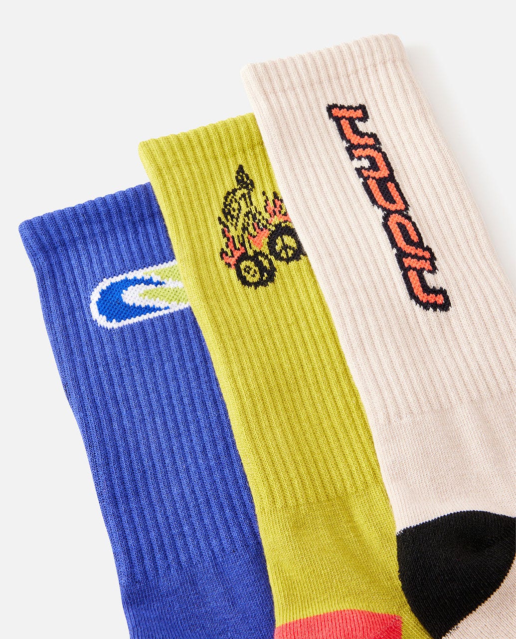 Enjoy comfort and style with the Retro Crew Socks 3-Pack. Featuring an embroidered logo, arch support, and a 1/2 terry footbed, these socks are a practical and stylish addition to your everyday wear. Available in size 9-13.