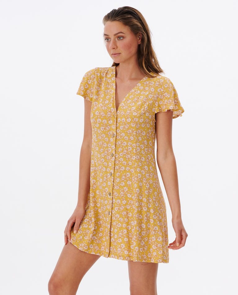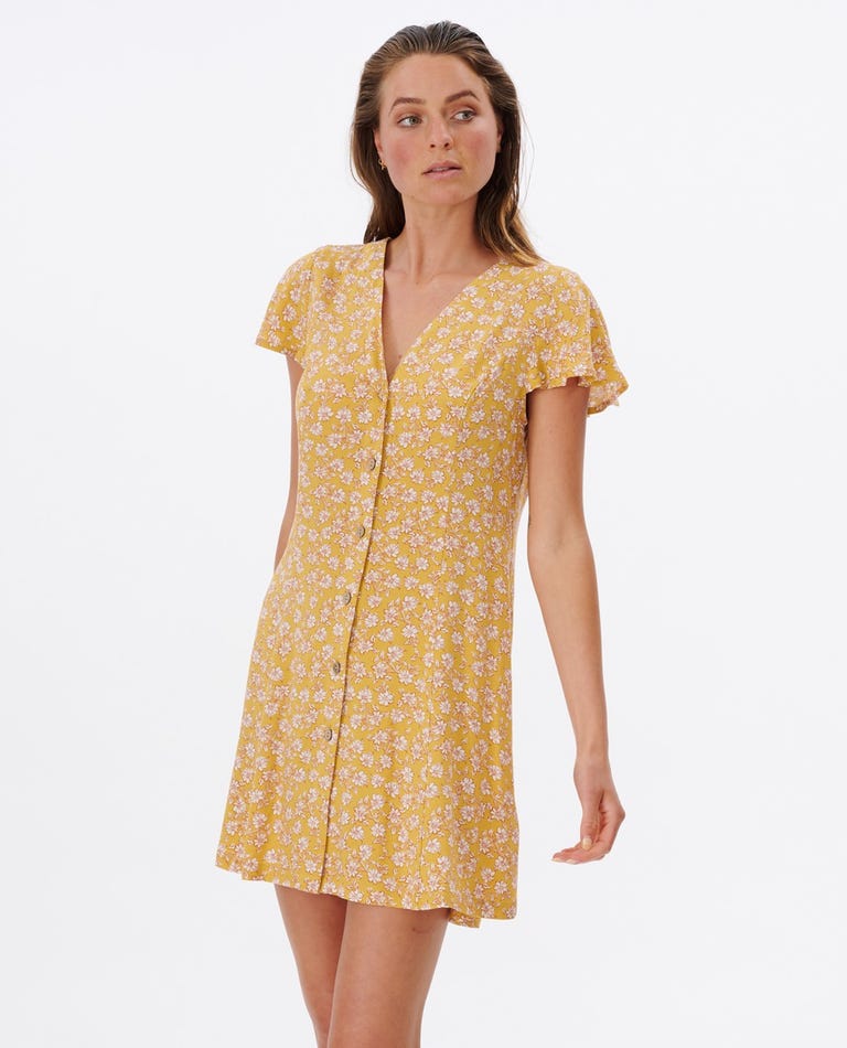 The Wanderer Button Through is a great women's dress made from light and flowy premium fabric. Designed in a standard fit with V neck, frilled sleeves and button up front for a comfortable everyday shape. Featuring a softening garment wash finish and Wanderer collection floral yardage print.