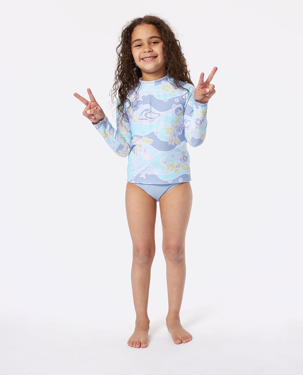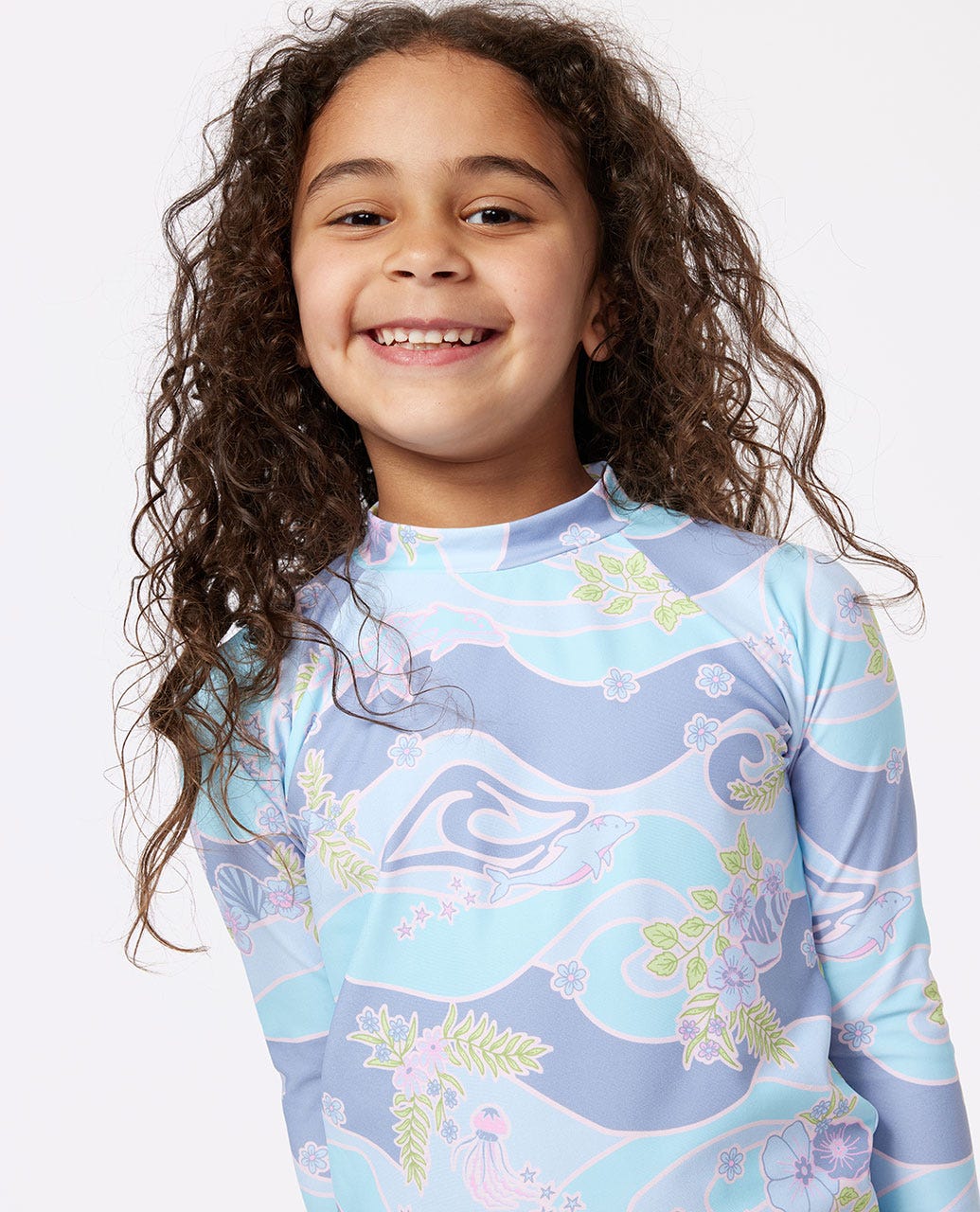 Stay protected in style with this Sunkissed Long Sleeve Surf Suit for girls aged 1-8 years. It's chlorine-friendly, offers UPF 50+UV sun protection, and made from durable fabric designed to last all summer long. She'll love the print, and so will you!