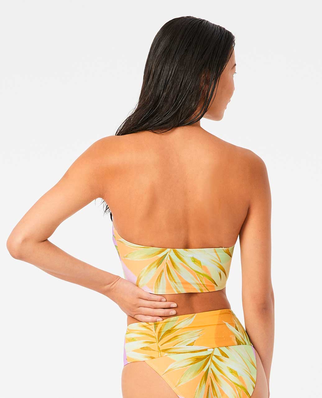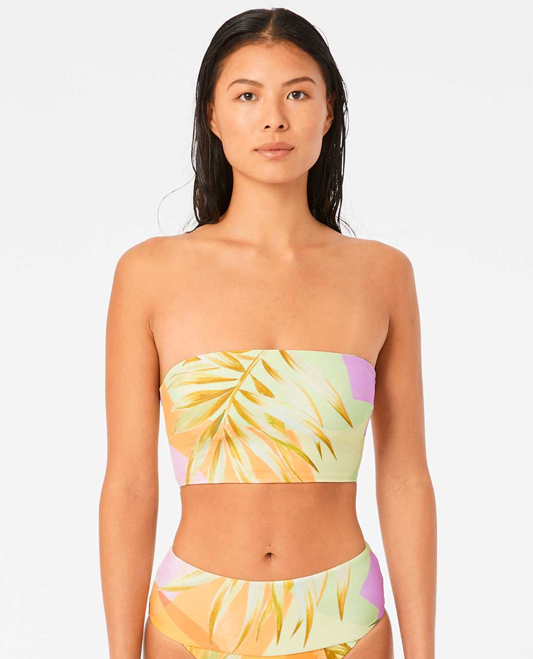 The Montego Bay Long Line Bandeau features an all over bright yardage print, internal grip tape for support and a detachable strap.