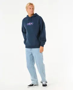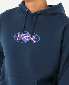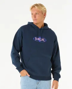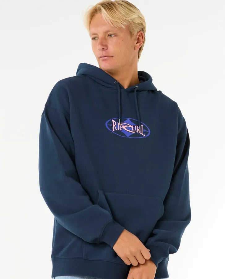 The Heritage Oval Hood blends surf style with cosy comfort, featuring cotton-poly fleece, a loose fit, and a kanga pocket. Its screen print logo and woven label deliver timeless coastal vibes.