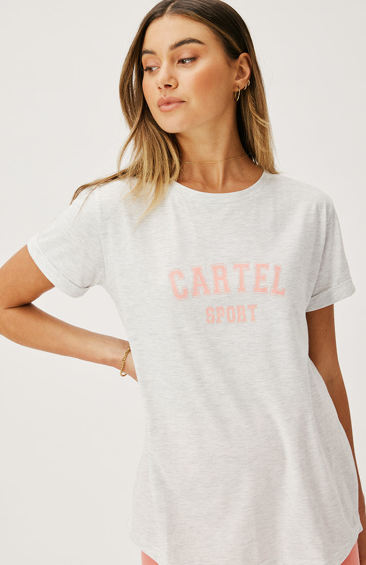 - Large Cartel sport logo on the chest in guava print