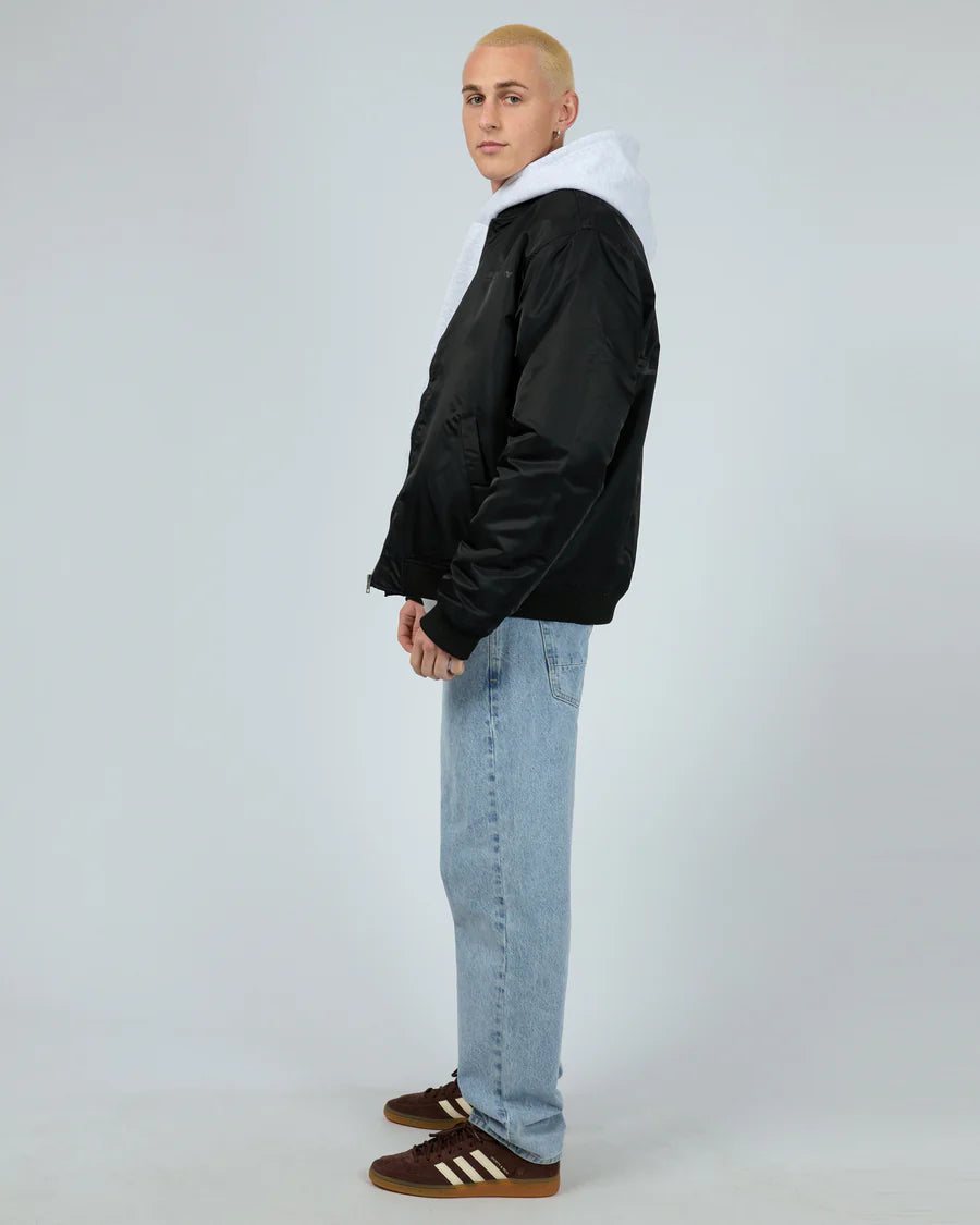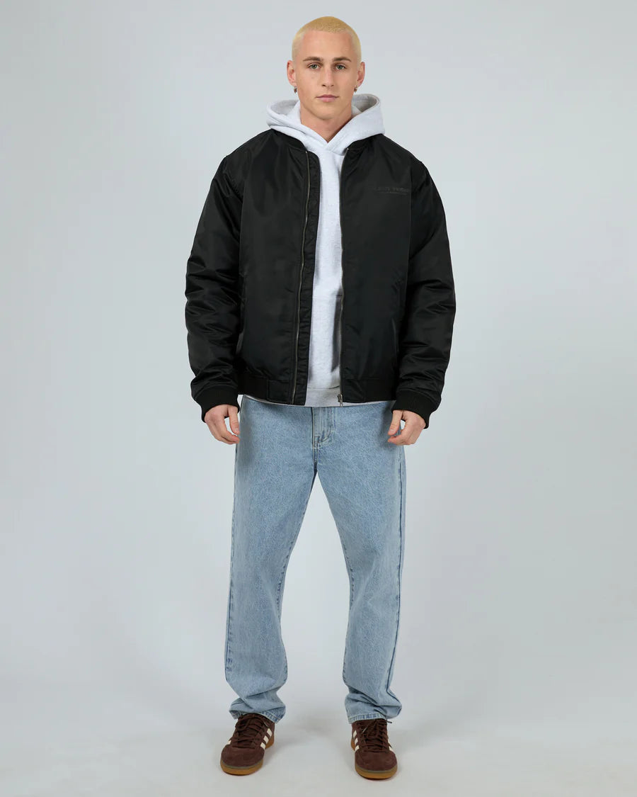 The Jagger Bomber is a simple yet stylish bomber jacket designed for durability and comfort. Its zip closure and nylon material make it easy to wear and suitable for any occasion. Complete with a tonal logo back print, this jacket is perfect for those seeking a sleek and understated look.