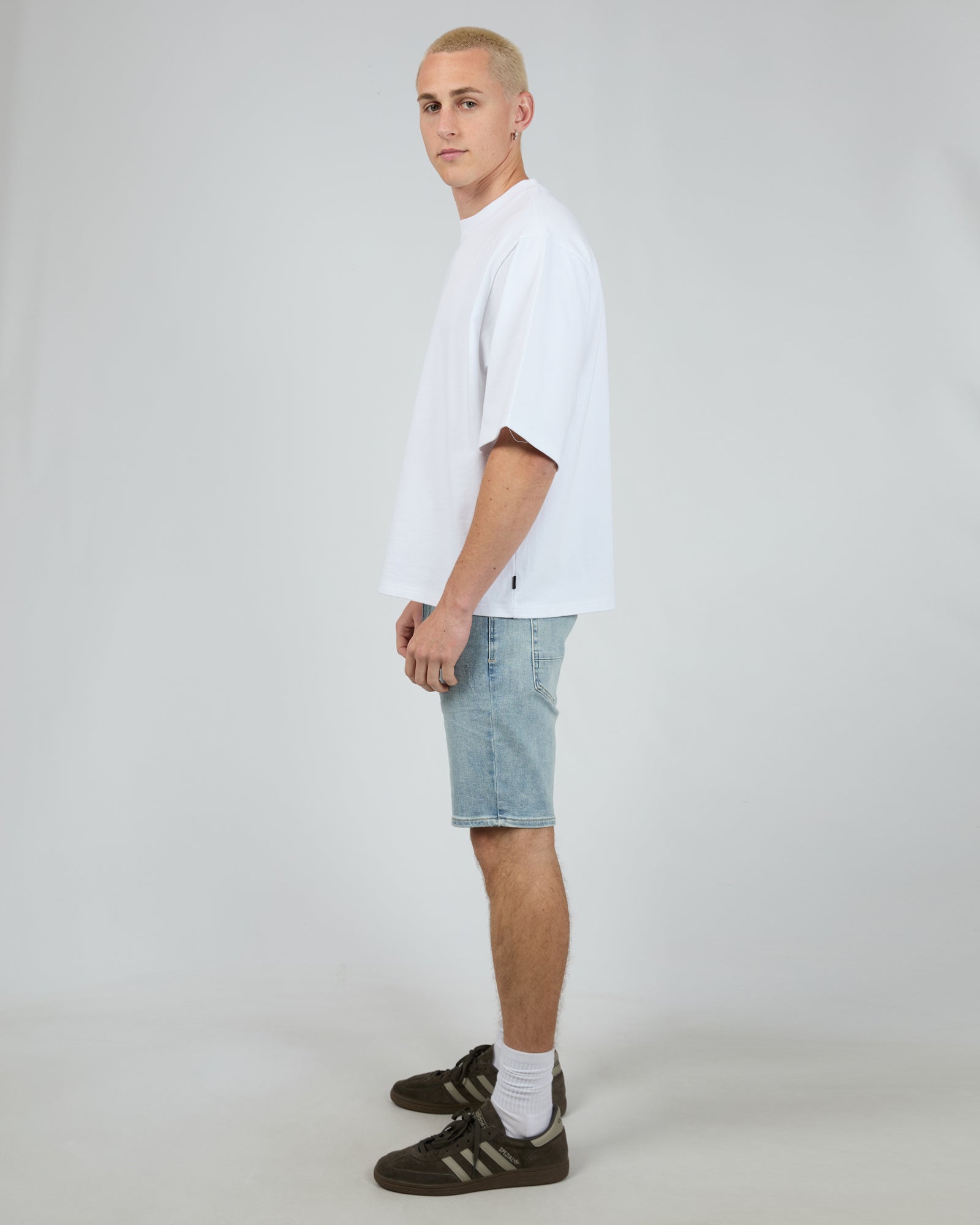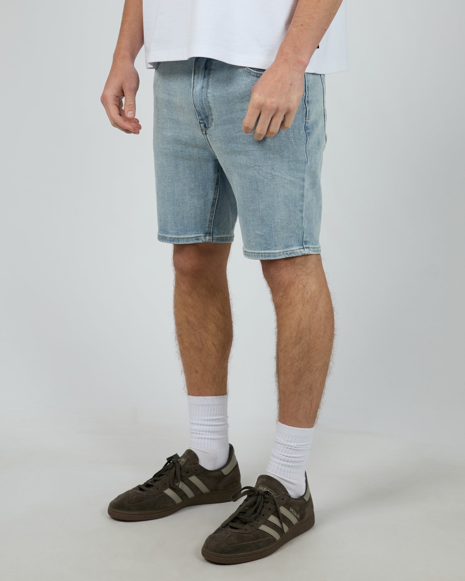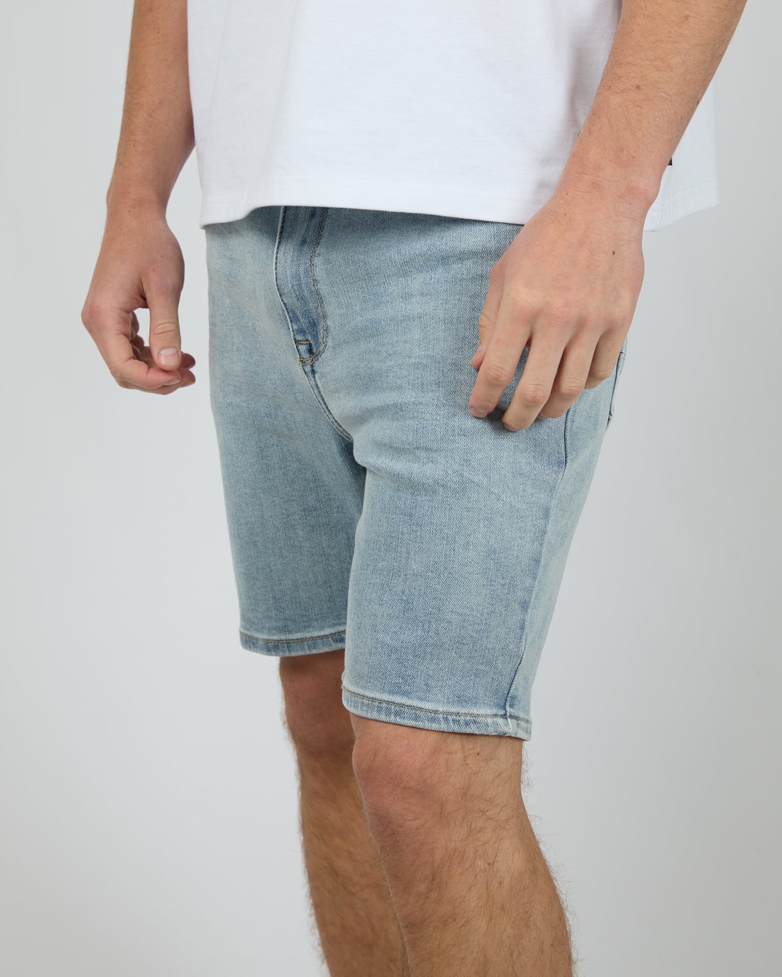 The Shadow A2 Short in denim features a mid-rise, relaxed fit designed for comfort. With five practical pockets, these shorts offer ample storage for your essentials, making them ideal for everyday wear.