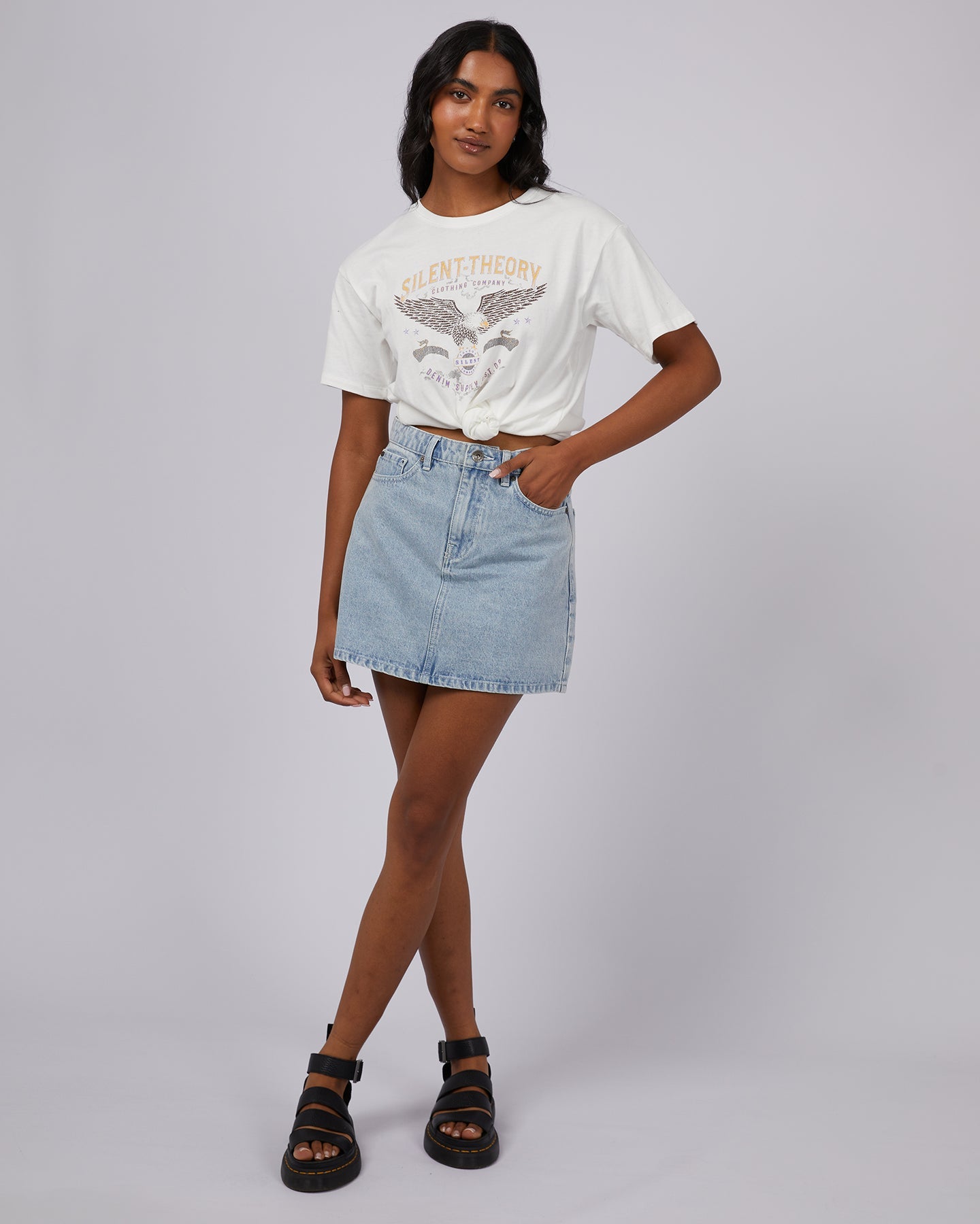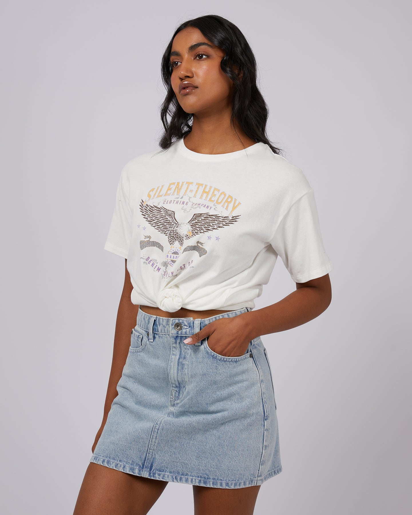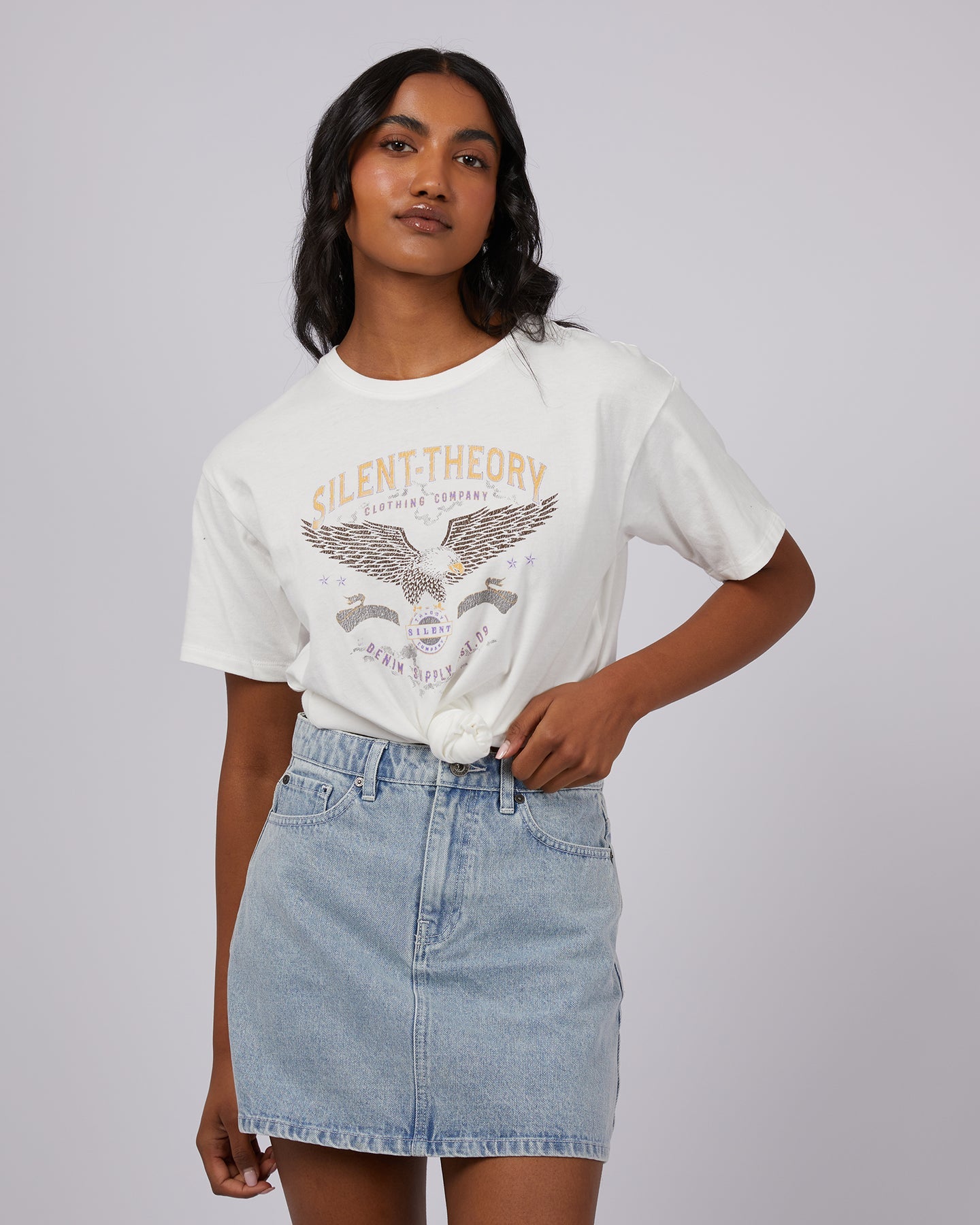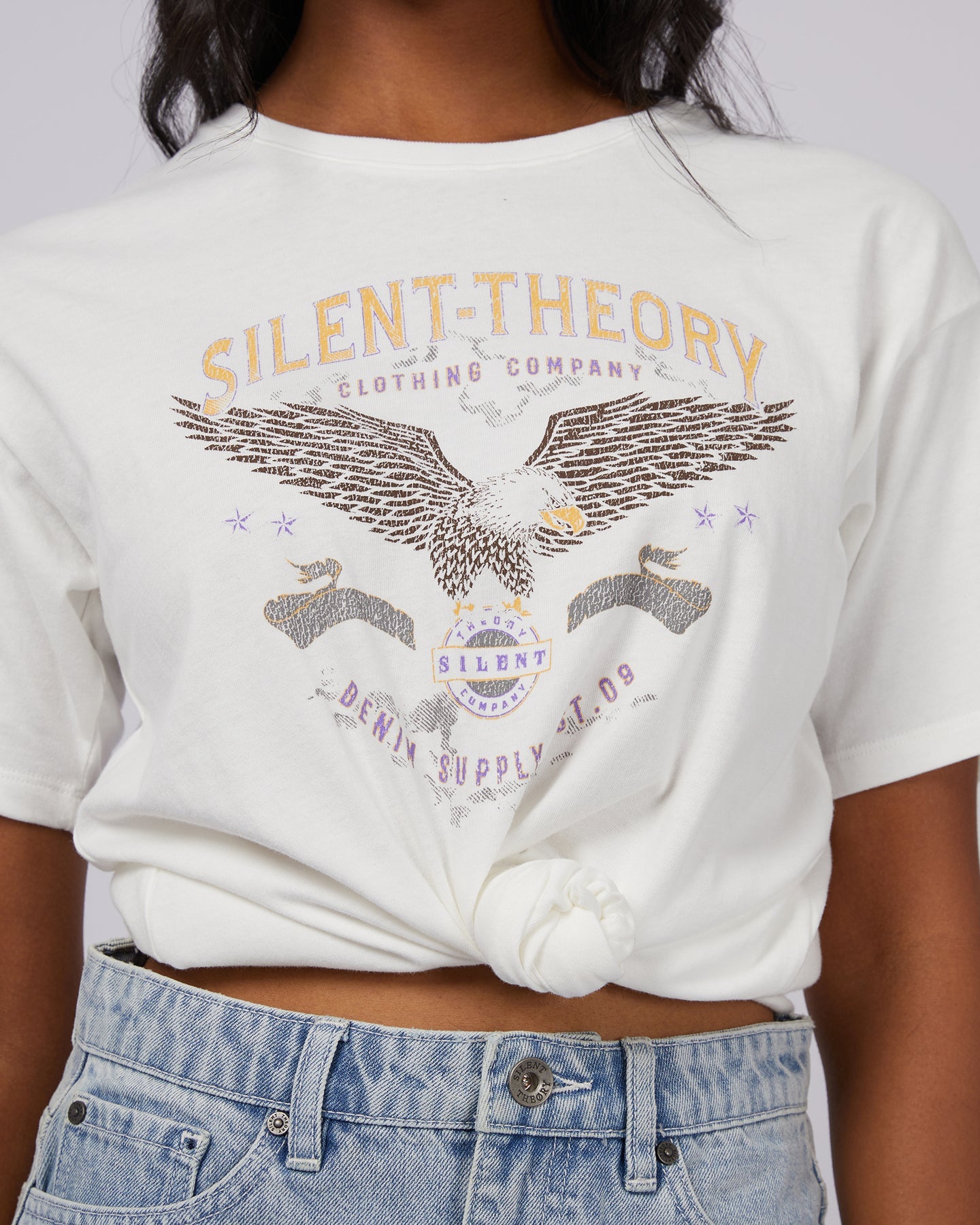 Our New Flight Tee is sure to become a wardrobe staple! Crafted from a comfortable cotton jersey this tee features a standard fit, Americana print and tie detail. Pair back with your favourite Silent Theory denim for an easy on the go look.