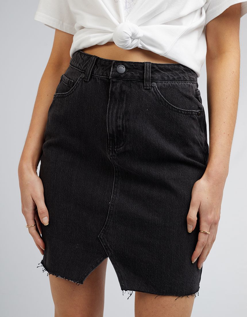 Blair Split Skirt by All About Eve in Tran-seasonal washed black features the fit you know and love, with classic five pocket styling. Easily pair back with a vintage tee and sneakers or dress up with this seasons fashion top.