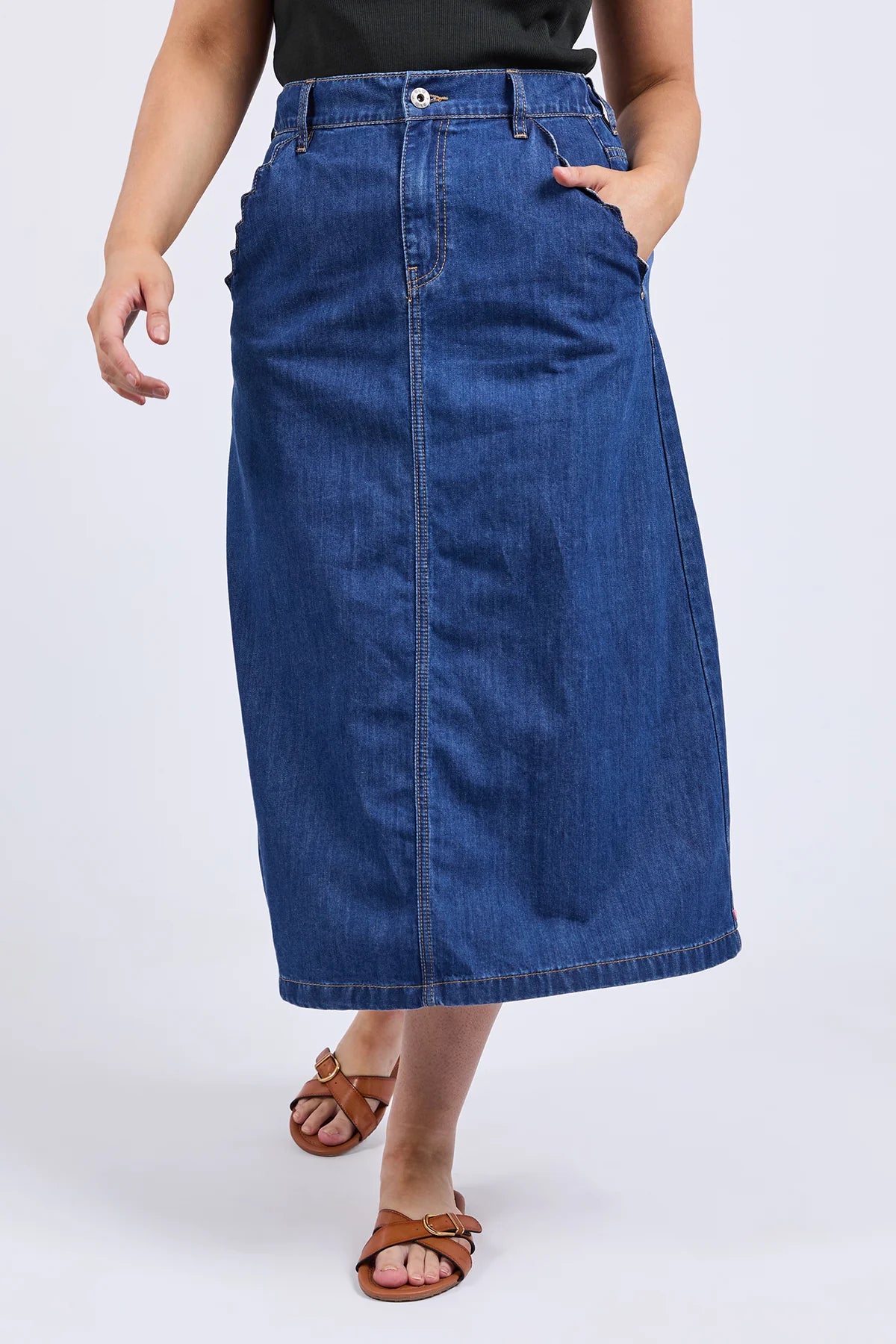 The new Scallop Edge Skirt brings the pretty to the denim party! Featuring a gorgeous scallop edge along the pocket just for an extra little bit of special in your wardrobe.