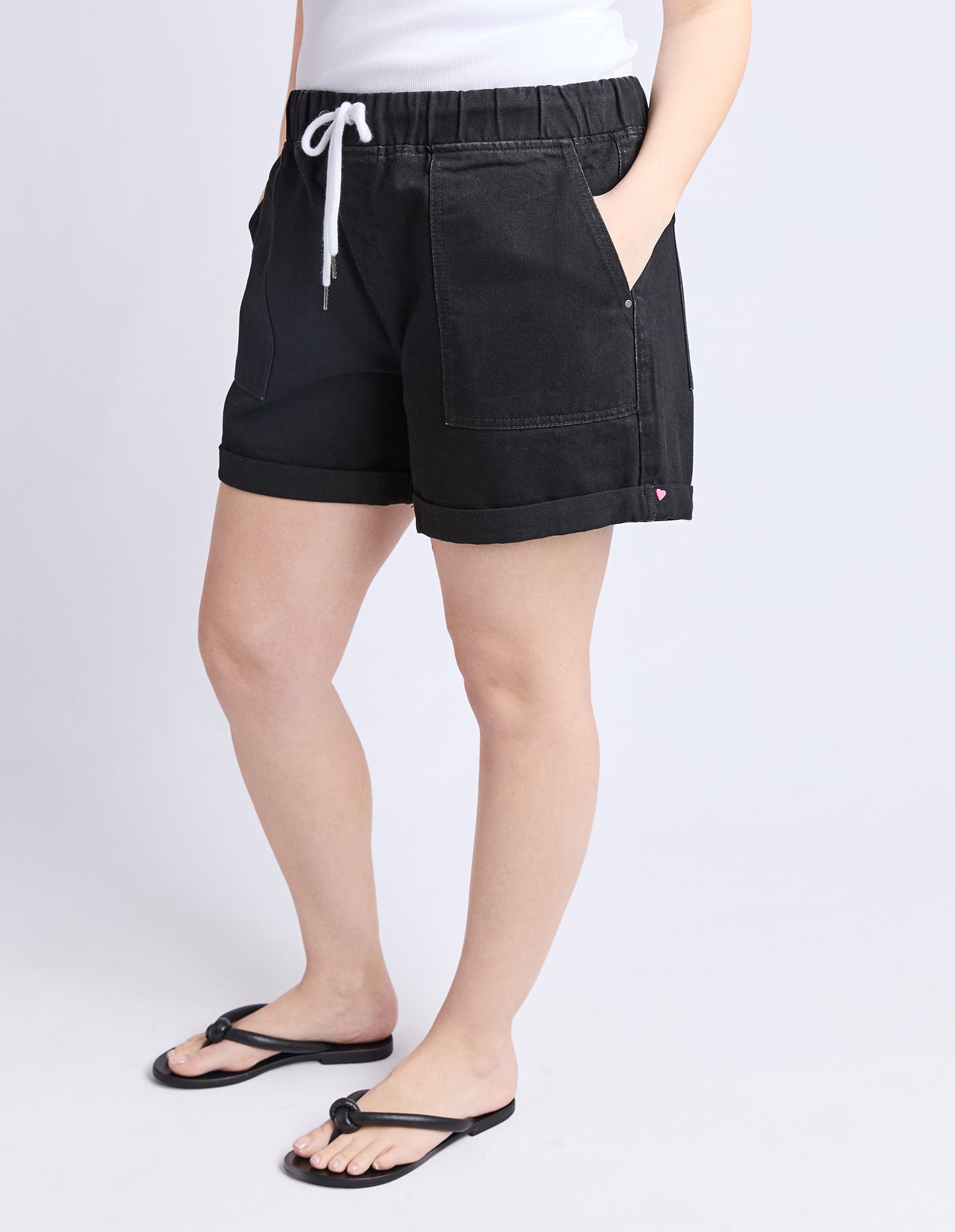 The must-have denim short! Made from rigid cotton denim, the Emma Shorts are a relaxed fit with an easy to pull on waist with drawcord. Featuring patch pockets and rolled up cuffs these shorts are a fantastic fit for everyday wear.
