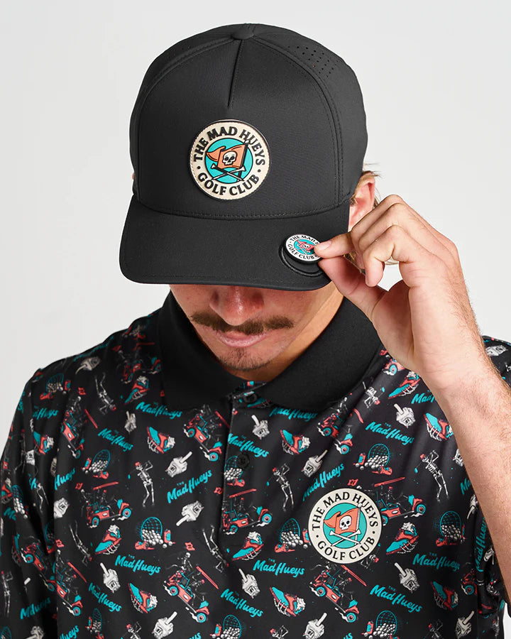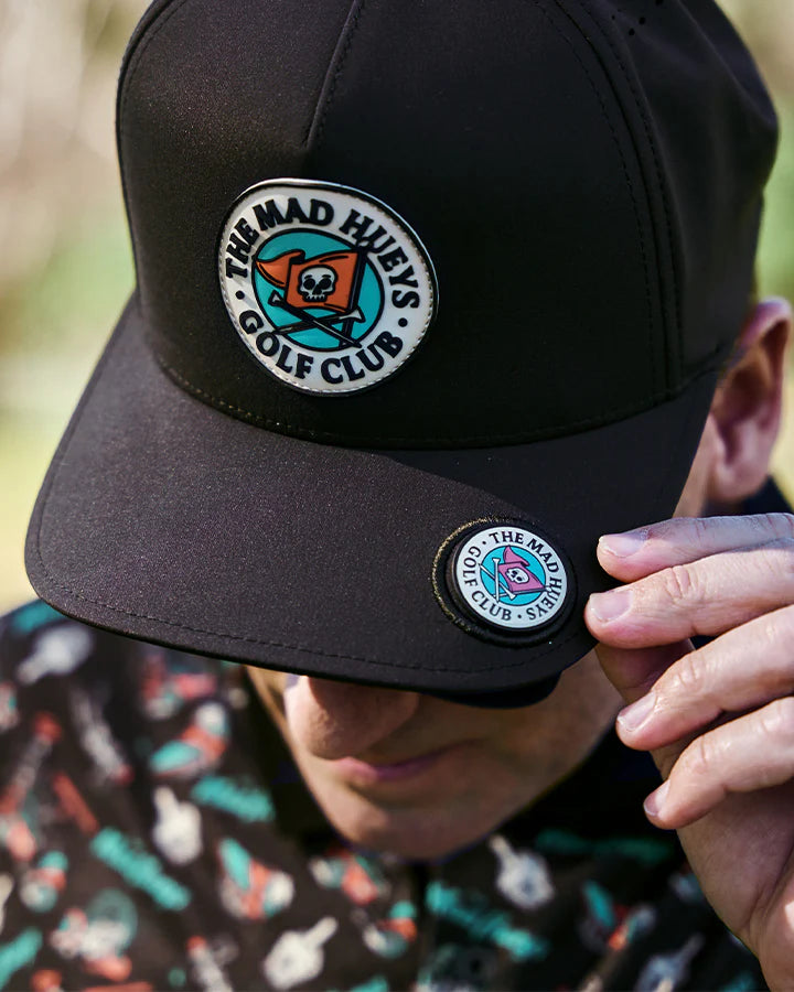 Including a custom printed magnetic ball marker attached onto the brim. Never lose your ball again!