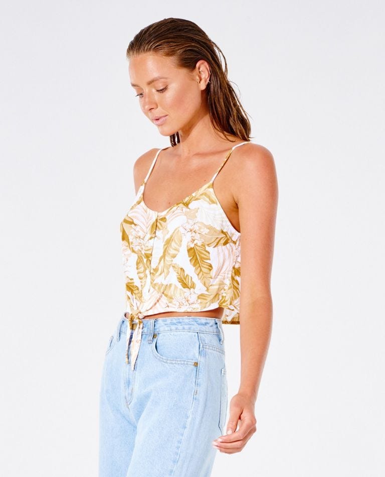Summer is coming! Make sure you're beach ready in the Ripcurl Namotu Cami. It's a quintessentially summer style, with a button through crop look, tie front detail and adjustable straps.