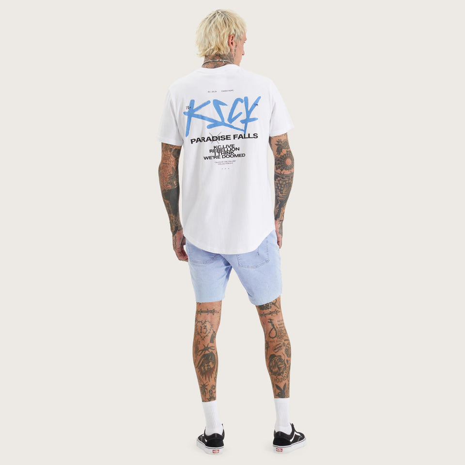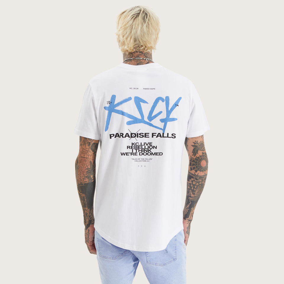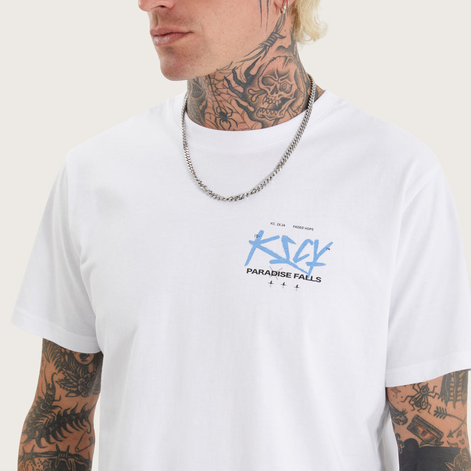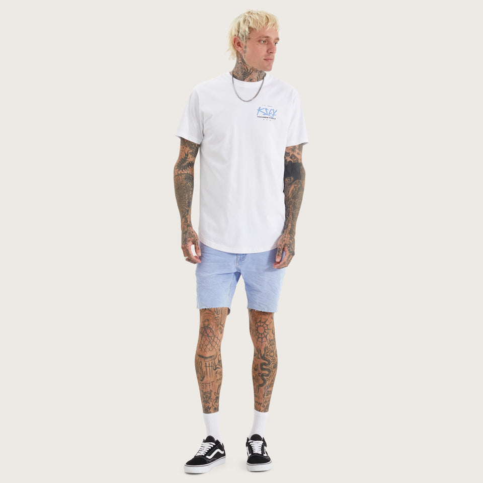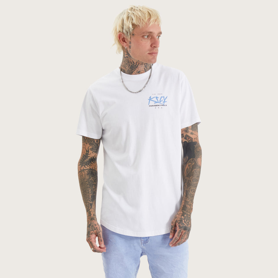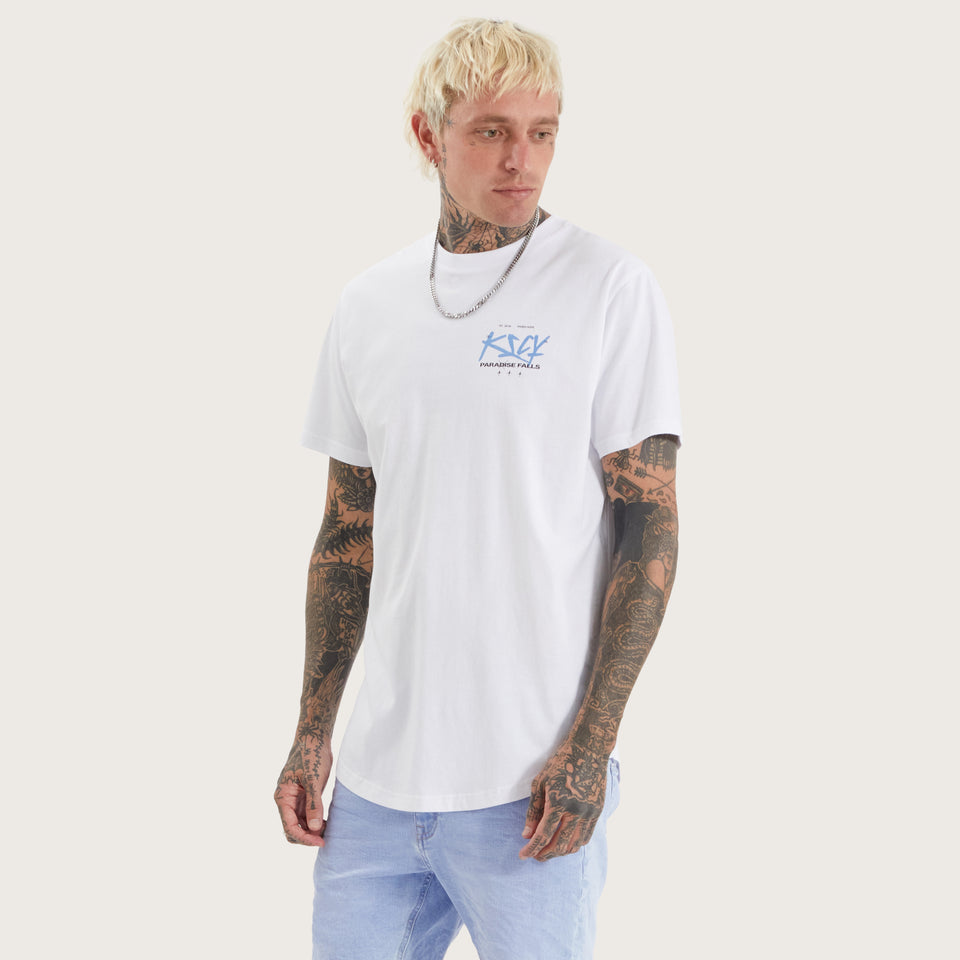 The Luxor Dual Curved Tee in optical white is anything but basic. With bold graphics and a structured slim fit, this tee brings a statement to any man's line-up.