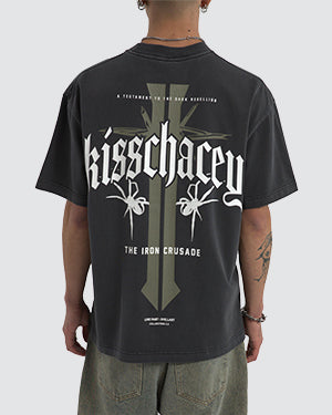The Crusade Street Tee in Pigment Black offers a comfortable, boxy fit made from 100% cotton, ensuring breathability and softness all day. Featuring a small KSCY print on the centre chest and a large KSCY cross print on the back, this men's tee combines style with casual ease, perfect for everyday wear.