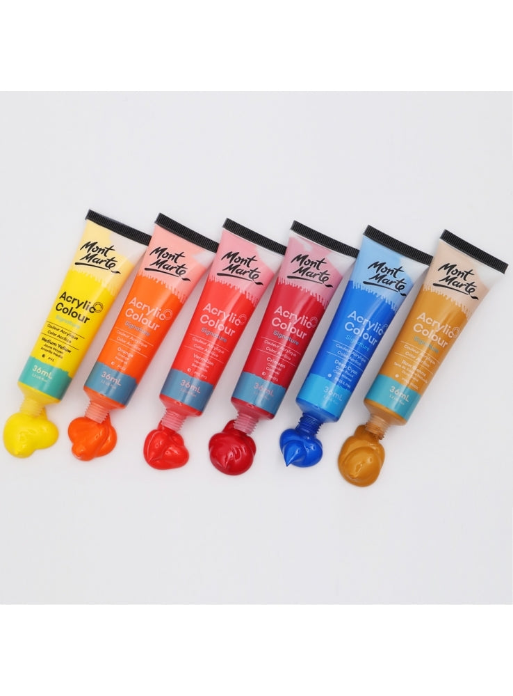 Dive into the world of painting with our Signature Acrylic Paint Set. This set comes with 24 great colours that dry quickly to a semi-matte finish. Whether you're a student or an artist, create something new today.