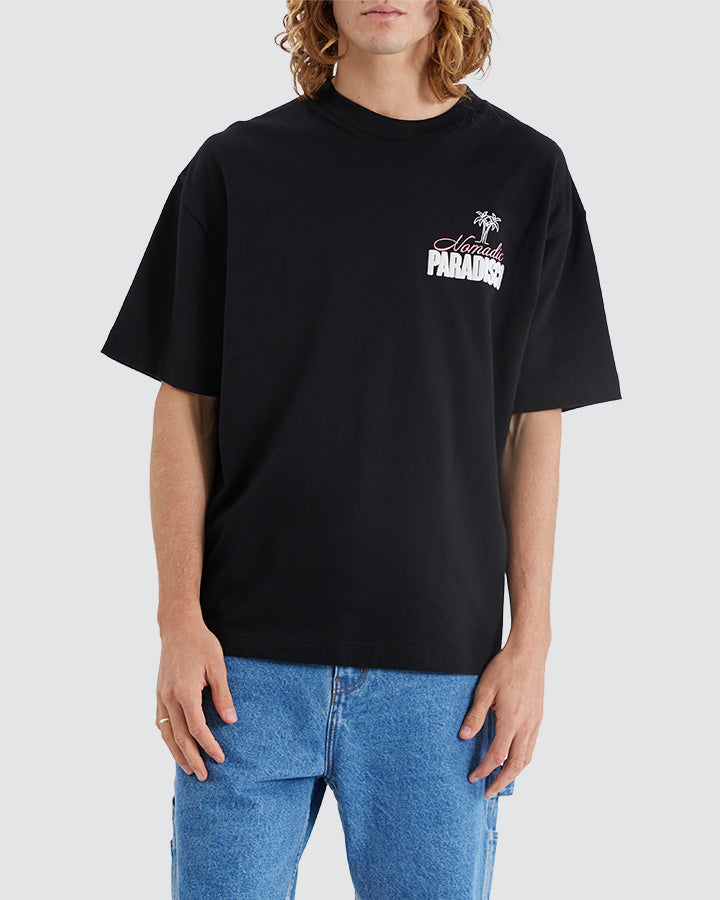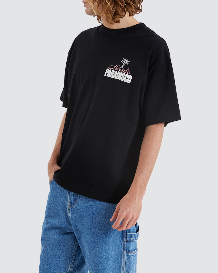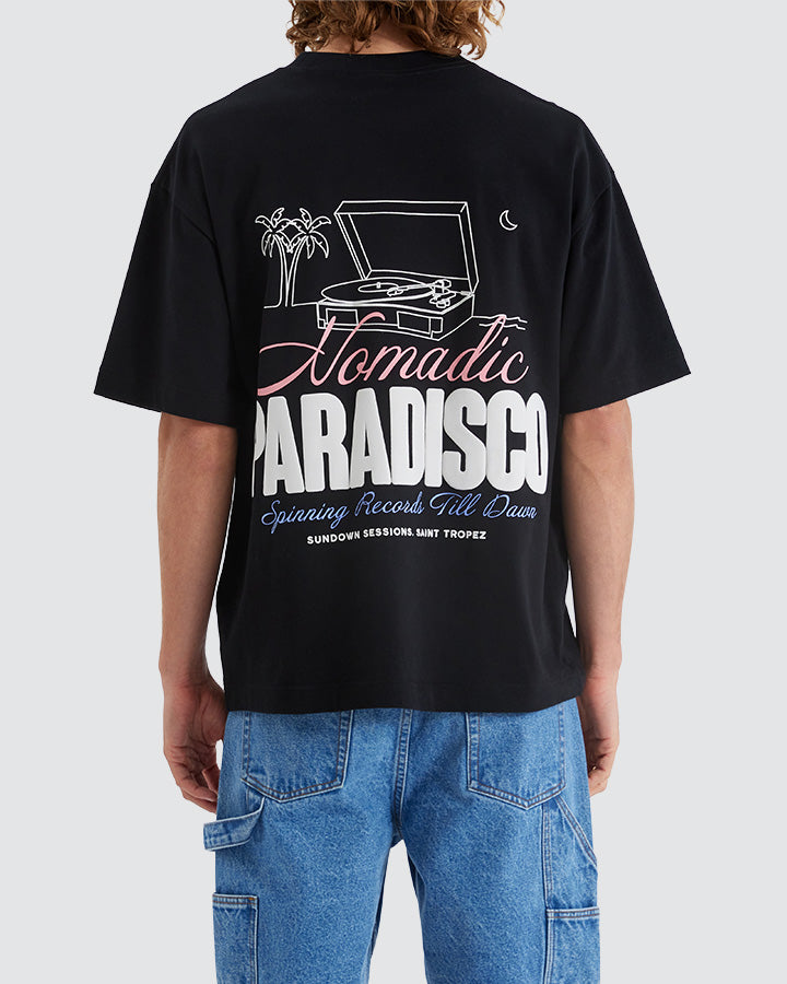 Get ready to turn heads with our Spinning Street Tee in Jet Black. Featuring a bold print on the back and a comfortable 100% cotton fabric, this men's shirt is a must-have for any wardrobe. With a boxy fit and oversized shape, you'll be looking cool and feeling confident all day long!