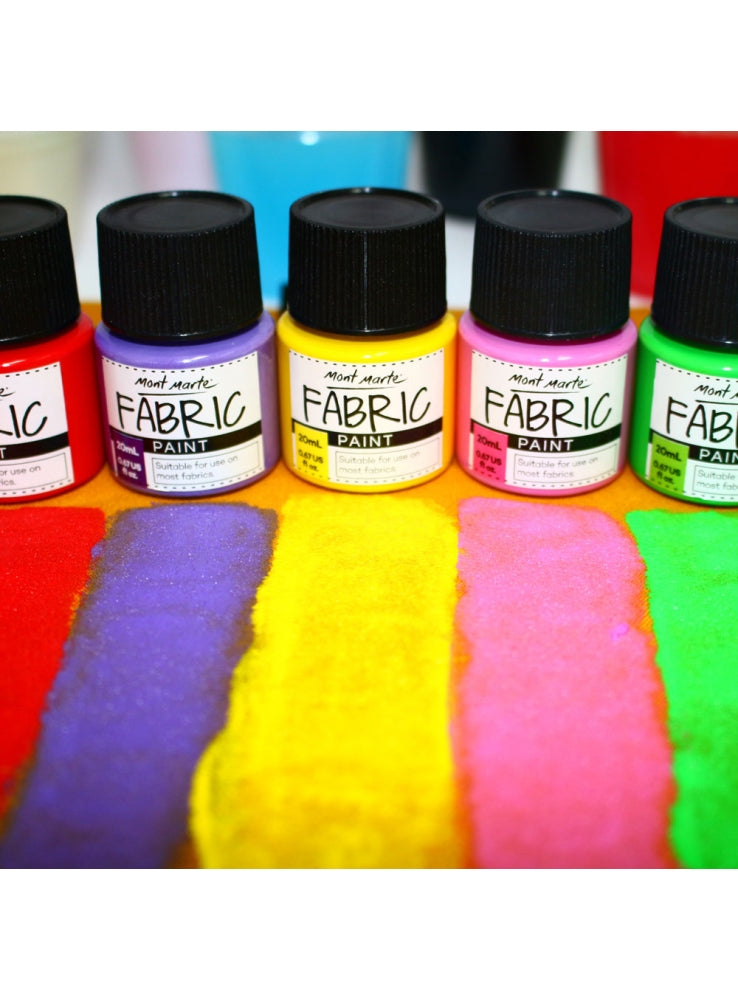Mont Marte Fabric Paints are perfect for all your DIY fashions and homeware projects. The eight bright, permanent colours can be mixed together for an endless palette and can be applied by hand, with a brush or with screen printing techniques.