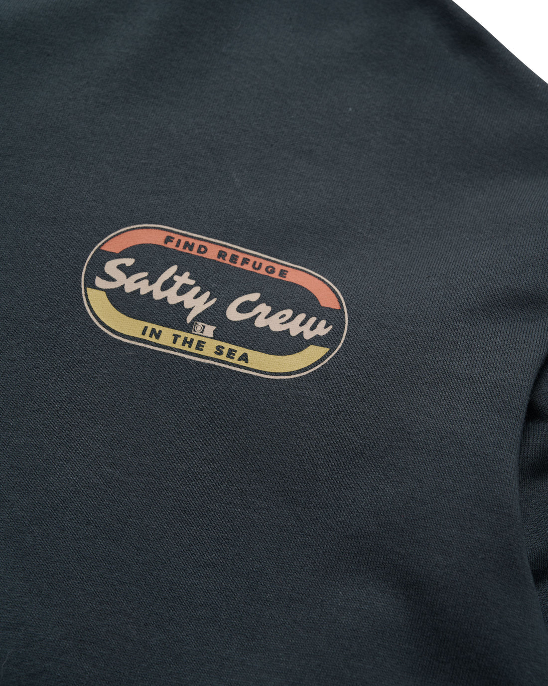 The Capsule Midweight Fleece Crew in Coal is crafted from our signature cotton/polyester brushed fleece, weighing 300gsm. It features a rib-knit neckband, cuffs, and hem, with a Salty Crew clamp label at the hem edge. Finished with screen-printed designs on both the front and back for a bold, stylish look.