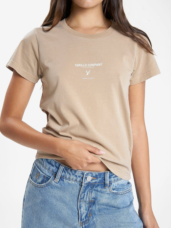 A classic like this Honour Everyday Tee in Sand will never go out of style. Soft organic cotton jersey combined with a relaxed fit make this a go-to ladies' tee for everyday wear. It features a classic crew neck that goes well with any shape, short sleeves and just the right length for tucking in or out. Subtle Thrills prints add a pop of understated appeal to the final look.